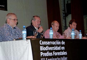 Seguido a los empresarios, por el GEF-UCAR, la funcionaria nacional Carolina Llavallol realizó una breve exposición sobre los alcances del proyecto Conservación de la Biodiversidad en Paisajes Productivos Forestales, y finalmente Gustavo Aparicio – en representación de las ONGs ambientales- dio su visión personal sobre las problemáticas ambientales, y expuso la mirada crítica que existe en general hacia la actividad forestal.