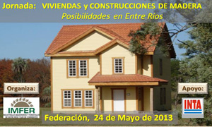 ENTRE RIOS (3/5/2013).- La Jornada Viviendas y Construcciones de Madera: “Posibilidades para Entre Ríos” se realizará en el salón de club social de Federación, el día 24 de mayo de 9.00 a 17.00 hs.