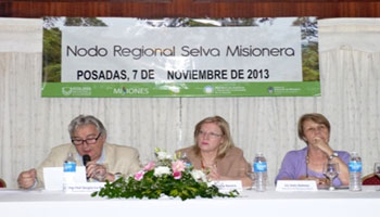 MISIONES (8/8/2013).- Con la apertura de la directora de Bosques de la Secretaria de Ambiente y Desarrollo Sustentable de la Nación, Inés Gómez, Sergio La Rocca, coordinador del Proyecto Bosques Nativos y su Biodiversidad (BIRF N°7520-AR) y la ministra de Ecología y Recursos Naturales Renovables de Misiones, Viviana Rovira, se presentó el Nodo Regional Selva Misionera, el cuarto nodo del país (después de Patagonia, Espinal y Parque Chaqueño), para dar inicio a las actividades que apuntarán a la generación de información sobre los bosques nativos de la región (Misiones y NE de Corrientes) para satisfacer las demandas que surgen de la gestión de los bosques en los distintos niveles de gobierno , y será un nuevo espacio intermedio de consenso que permitirá definir procedimientos y planes de trabajo entre la Provincia y el Estado Nacional.