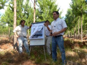 Finalmente, la segunda parada técnica fue en la misma zona sobre la gestión sustentable del manejo de plantaciones, a cargo de Adrián Vogel, actual jefe de Operaciones Forestales de la compañía anfitriona del encuentro.