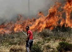 En la zona operan 55 camiones, 170 bomberos, tres aviones cisterna y dos helicópteros y la carretera que conduce hasta Neapoli fue cerrada.