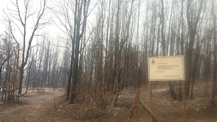 Según advierte un experto de la U. Católica del Maule, el fuego ha destruido el 50% de los bosques de una especie de árbol endémico de Chile que se encuentra en peligro crítico de extinción. Se trata del Ruil (Nothofagus alessandrii), que hasta antes de los últimos incendios forestales sólo contaba con 314 hectáreas de bosques en el país, de las cuales la mitad ya han sido arrasadas por el fuego.