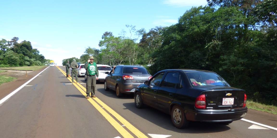 En el marco de las medidas de fuerza adoptadas por un grupo de Guardaparques del Ministerio de Ecología de Misiones, afiliados al gremio de ATE (Asociación de Trabajadores del Estado), en reclamo de mejoras salariales y condiciones de trabajo, decidieron hoy concentrarse en el Parque Provincial Península, entre Andresito y Puerto Iguazú, para analizar las acciones a seguir y demoran el tránsito con entrega de volantes «en su plan de lucha por un salario digno».