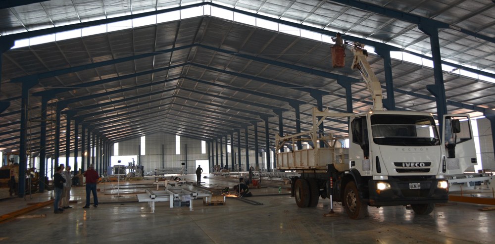 Respecto a la obra, se trata de una planta que abarca una superficie de casi cinco hectáreas, con una nave central de 50 metros de frente por 145 metros de fondo, en la que se está terminando de instalar las maquinarias que llegaron desde Alemania, que son las más grandes de Argentina y las más modernas de Sudamérica.