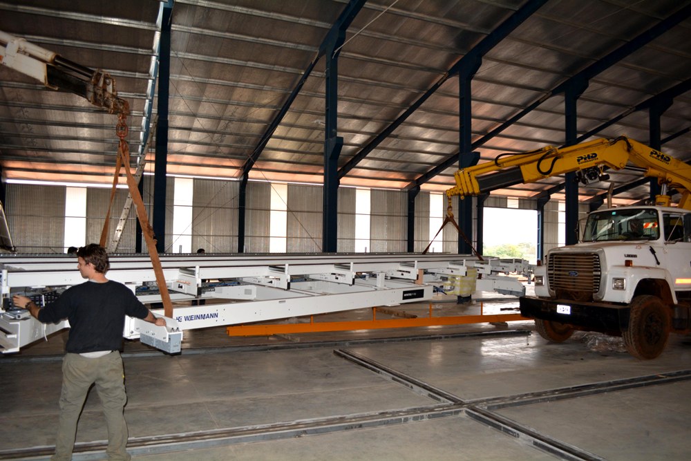 MISIONES (11/6/2019).- En las próximas semanas se ocuparán de avanzar en la obra del montaje del equipamiento que terminó de llegar de Alemania la semana pasada, con los dos últimos contenedores. Se continuará en los próximos días con el programa de capacitación a operarios y supervisores técnicos, como también al personal que estará a cargo del armado de los kit de las viviendas industrializadas de madera.