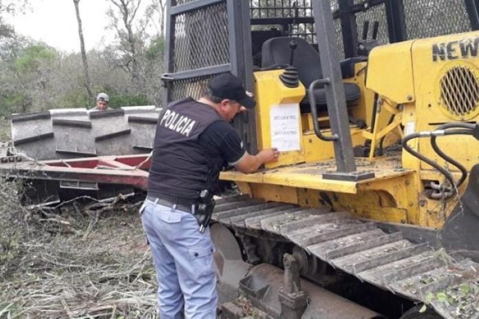 CHACO (15/6/2019).- El Ministerio de Producción, continúa realizando operativos de Fiscalización Forestal en varios puntos de la provincia del Chaco; en este caso, a través de inspectores de la Dirección de Bosques y con la colaboración de la Policía del Chaco, detuvieron una topadora que se encontraba realizando tareas de desmonte sin permiso.