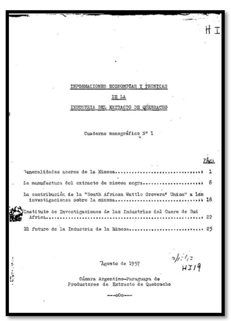 Esta publicación era editada por Cámara Argentino-Paraguaya de Productores de Extracto de Quebracho. Aparece en 1957 y culmina en 1965. Cada Cuaderno incluía el desarrollo de varios temas relacionados con el Quebracho y la Mimosa.