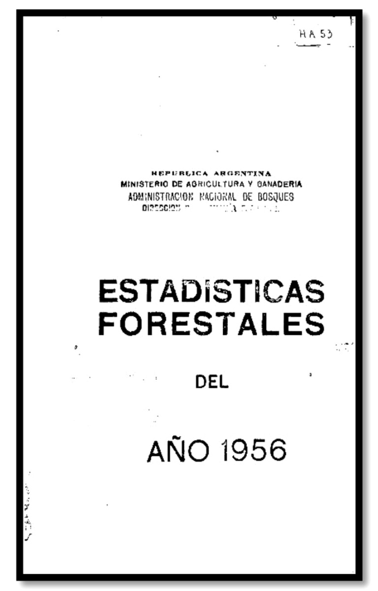 Publicación anual editada por la Dirección de Economía Forestal de la Administración Nacional de Bosques, desde 1956 hasta 1987. La información se presentaba en 5 capítulos: 1. Consumo aparente, 2. Extracción de productos forestales, 3. Productos manufacturados, 4. Comercio exterior y 5. Recursos forestales argentinos. La Biblioteca Forestal de la Secretaría de Agroindustria, se encuentra abocada a la digitalización de la colección completa.