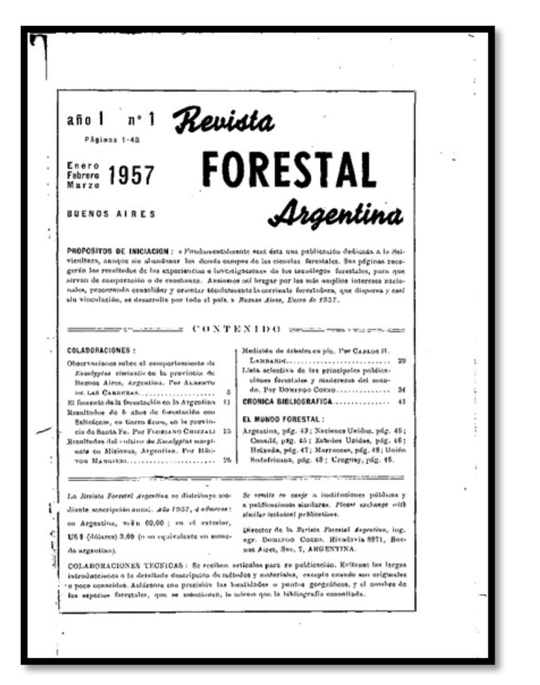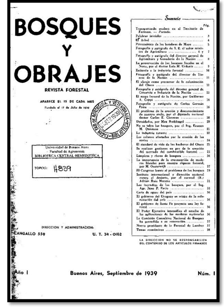 BUENOS AIRES (AÑO 2019).- Este trabajo tiene el objetivo de lograr una aproximación a la riqueza y diversidad de las revistas forestales históricas, editadas tanto en el ámbito público como privado. Ellas forman parte del patrimonio documental de las ciencias forestales de Argentina y se constituyen en valiosa fuente de información para aquellos profesionales que están abocados al estudio del sector desde comienzos del siglo XX.