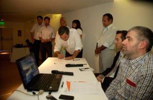 La foto del recuerdo: el Dr. Oscar Gauto junto a los ex decanos y vicedecanos, en conmemoración de los 45 Años de la FCF-UNaM