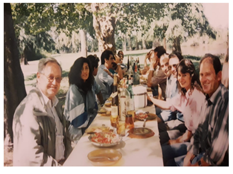 Foto de portada: Delante, a la izquierda el Dr. Wilfredo Barrett en un almuerzo forestal de camaradería (gentileza Teresa Cerrillo INTA Delta)