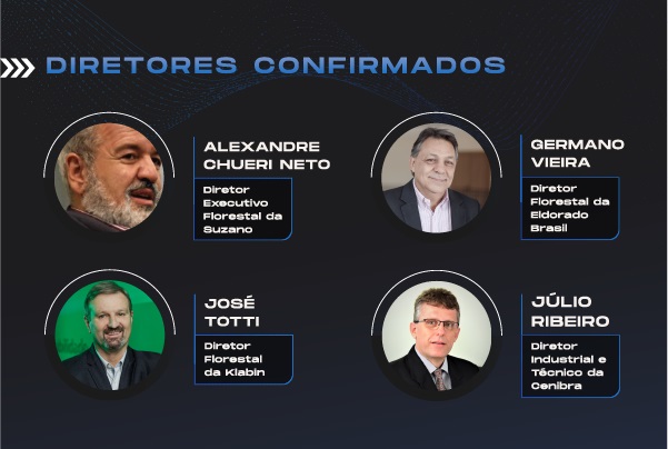 Se confirman los siguientes: Alexandre Chueri Neto, director ejecutivo forestal de Suzano; Germano Vieira, director forestal de Eldorado Brasil; José Totti, director forestal de Klabin; y Júlio Ribeiro director industrial y técnico de Cenibra.