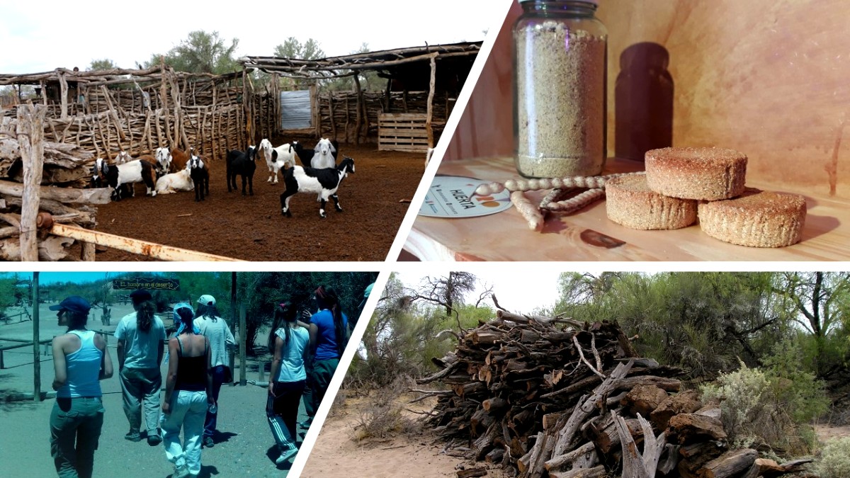 Figura 2. Productos del Monte: ganadería, harina de algarrobo, ecoturismo y leña. Fotos de C. Fernández, J. Alvarez y P. Villagra