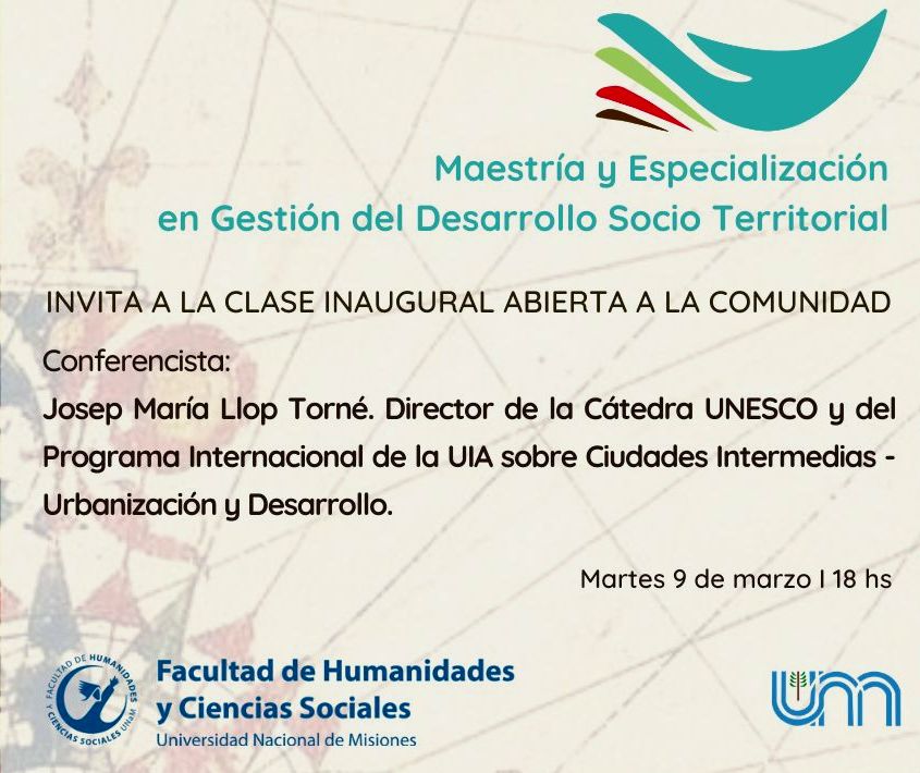 El experto brindará una conferencia magistral virtual y abierta a la comunidad, desde España, a las 18 horas. Es director de la Cátedra Unesco y del Programa Internacional de la UIA sobre grandes ciudades intermedias, Urbanización y Desarrollo. El especialista participará de una sesión virtual inaugural de la Maestría y Especialización en Gestión del Desarrollo Socio Territorial, organizado por la Facultad de Humanidades y Ciencias Sociales de la Universidad Nacional de Misiones.