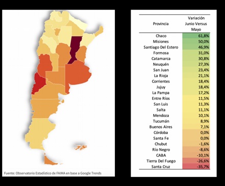 Las provincias de Chaco y Misiones recuperan en la variación mensual del interés por el Mueble. Se destaca también la suba de Mendoza que alcanza un buen nivel absoluto.