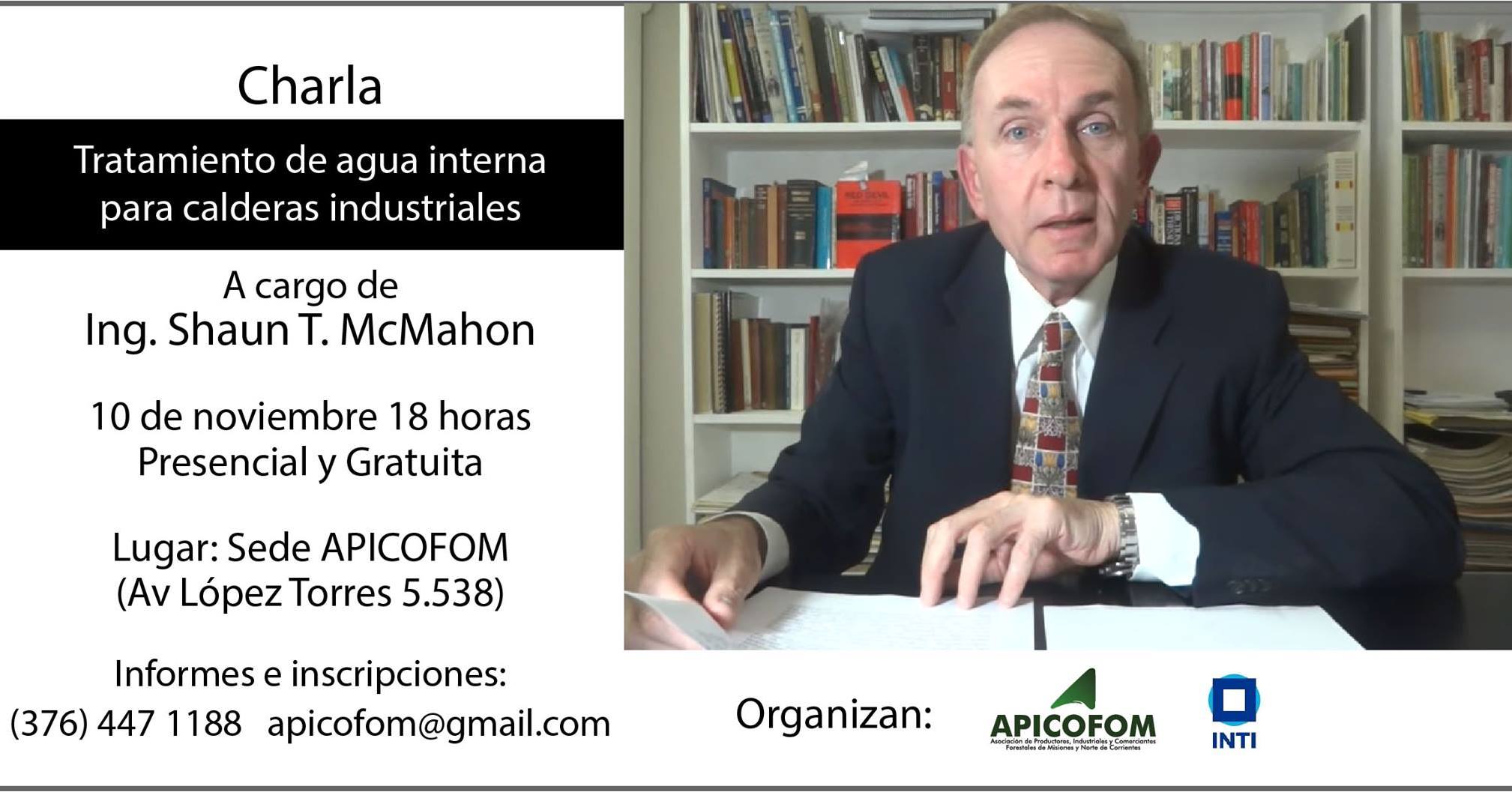 El encuentro denominado “Tratamiento de agua interna para calderas industriales” es organizado por la entidad foresto industrial y el INTI Misiones, y se realizará el 10 de noviembre, a las 18 horas, de manera presencial y en forma gratuita. Estará a cargo del Ing. Shaun T. McMahon, reconocido especialista en la materia.