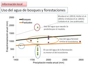 AF: En la presentación de su conferencia, titulada «¿Qué sabemos sobre la relación entre los bosques y los recursos hídricos que nos ayuden a comprender y manejar el uso del agua?” habla de bosques en un todo. Expliqué por qué, siendo que se trata de ambientes diferentes e impactos diferentes respecto al manejo del agua y los sitios cuando se trata de plantaciones forestales (pino o eucalipto).