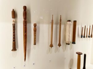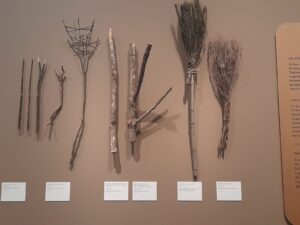 Así, “¡Toquemos madera! Diseño, madera y sostenibilidad” reúne 420 piezas que incluyen desde las lanzas de Schöningen -el artefacto de madera más antiguo de la humanidad localizado hasta ahora que cuenta con unos 300.000 años- o cucharones de la época neolítica, hasta el clavicémbalo de Christian Zell, diseños de muebles de madera curvada al vapor y aplicaciones actuales de la madera en los terrenos de la aeronáutica, los automóviles, la salud, la energía, la acústica y la construcción, con un prototipo actual de una casa a tamaño real fabricado en madera, corcho y paja (Vivienda MHM, proyecto coordinado por Salvador Ordóñez) que responde a las exigencias y retos para hacer frente a la crisis medioambiental