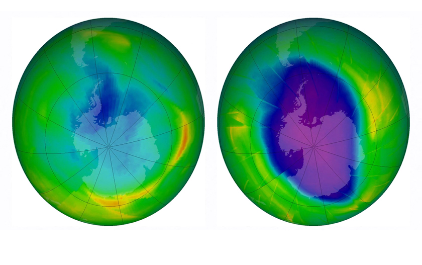 En la década de los ochenta se descubrió un enorme agujero en la capa de ozono en lo alto de la atmósfera sobre el Polo Sur, causado por el daño producido por los clorofluorocarbonos (CFC), gases utilizados para refrigeradores y espumas aislantes. Este descubrimiento condujo al Protocolo de Montreal, un acuerdo internacional para detener la producción de CFC.