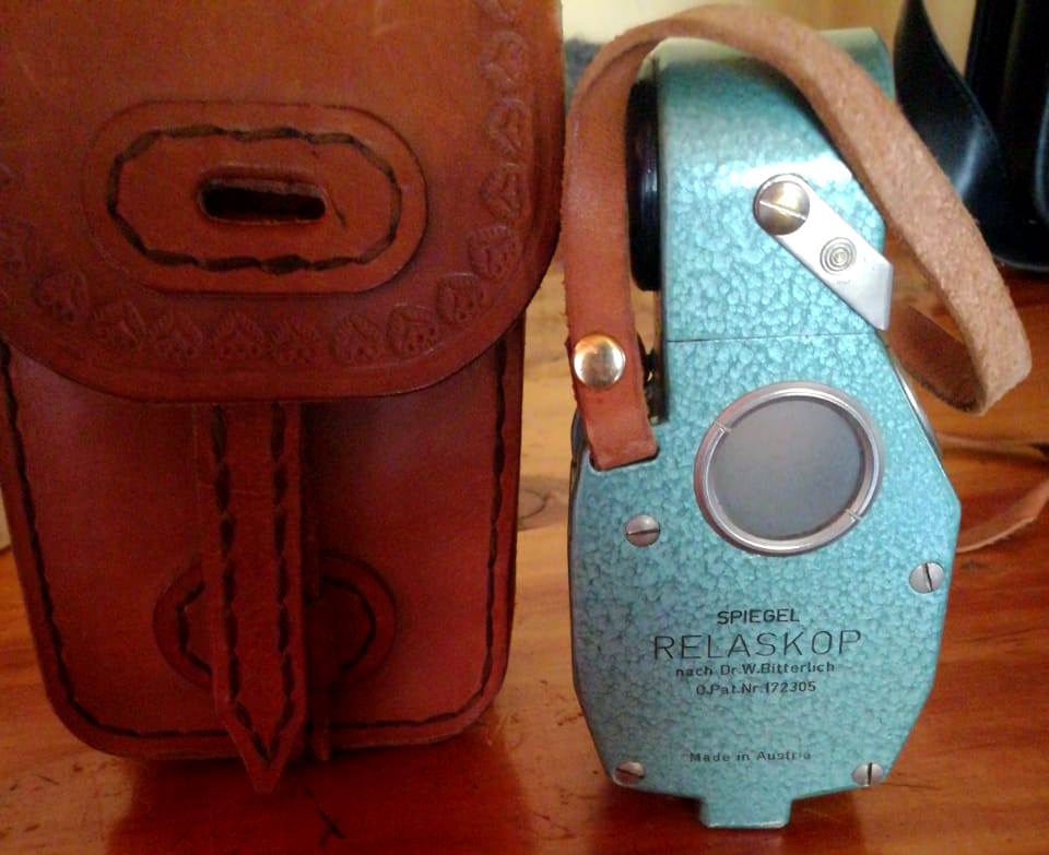 El aparato fue diseñado por el forestal austriaco Walter Bitterlich en 1954, para la realización de mediciones de distintos parámetros en el ámbito de los bosques. A pesar de los último avances tecnológicos, este instrumento mantiene su vigencia para la realización de determinadas mediciones forestales.