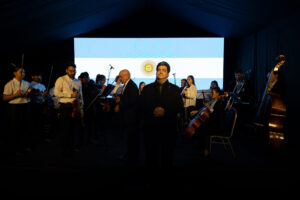A continuación, la Orquesta de Los Barrios, dirigida por el maestro Nestor Tedesco, interpretó los himnos de la Argentina y de la Unión Europea junto al reconocido barítono argentino Leonardo López Linares.