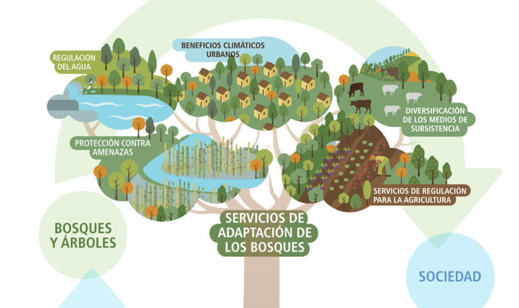 Los bosques y los árboles pueden ayudar a las personas a adaptarse al cambio climático a través de los servicios ecosistémicos que proporcionan, pero ellos también deben adaptarse y mantener su propia resiliencia, incluso para poder continuar almacenando y secuestrando carbono.