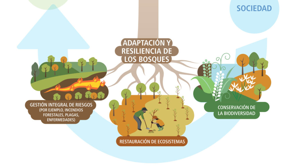 Los bosques y los árboles son fundamentales para solucionar la crisis climática: proporcionan servicios de adaptación esenciales, y su potencial de mitigación depende de su capacidad para adaptarse y mantenerse resilientes en el contexto del cambio climático.