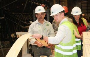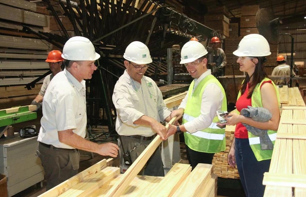 Durante su visita, acompañado por Rafael Scherer, recorrió el aserradero certificado PEFC de Pindó, que posee una capacidad de producción mensual de más de 8.000 metros cúbicos.