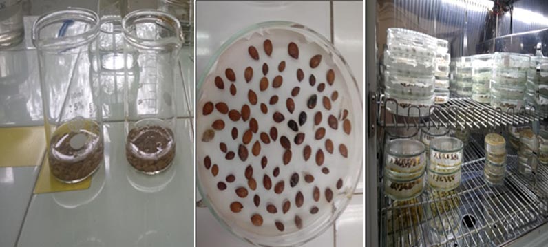 Proceso de desinfección de semillas con extracto clavo de olor, siembra in vitro de semillas, incubación de semillas.
