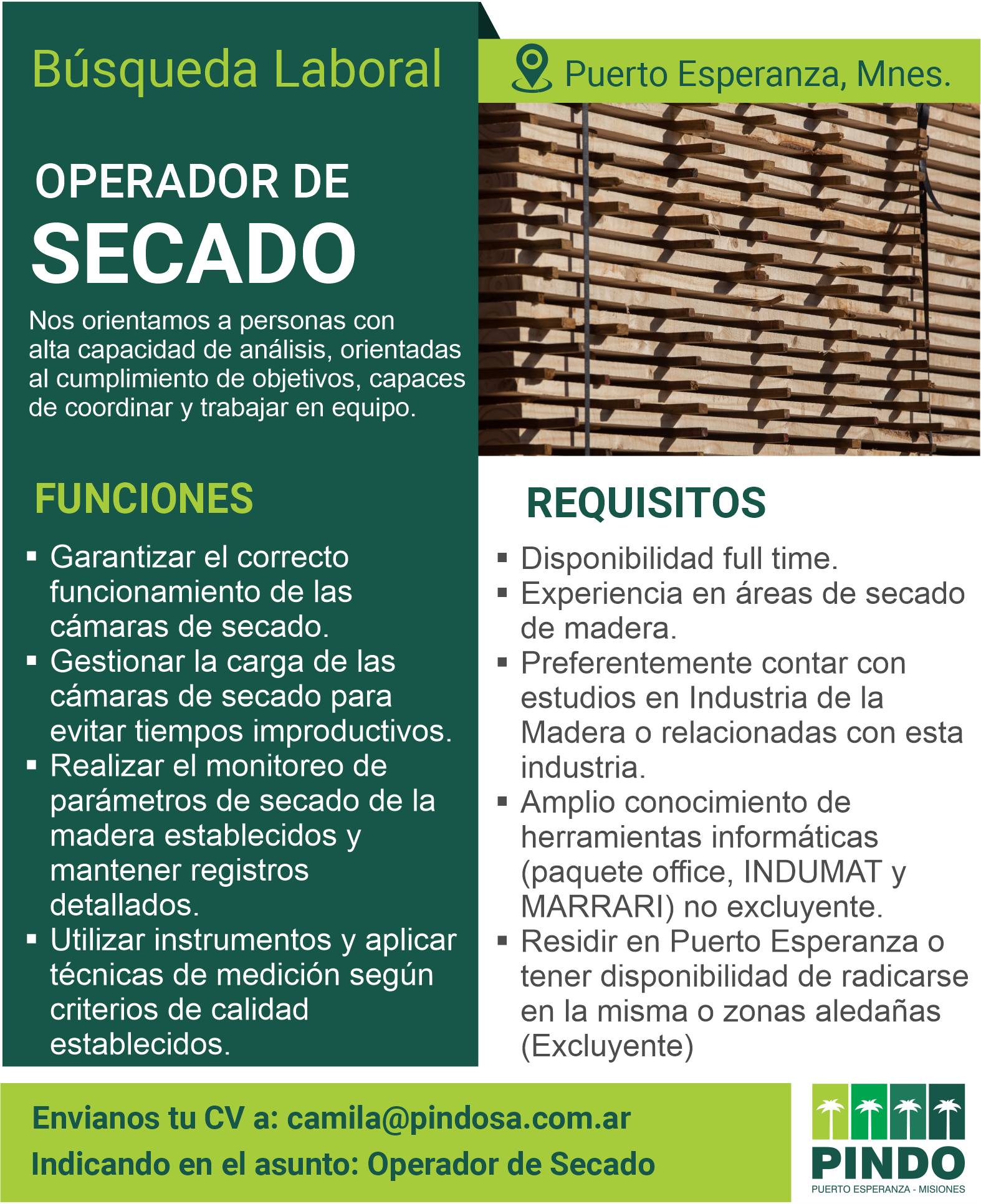 - Operador de Secado para la producción de madera.