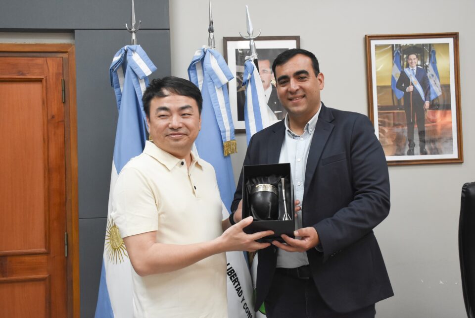 CORRIENTES (8/3/2025).- El intendente de Santo Tomé, Augusto Suaid, junto a su equipo del área de Producción e Industria, recibió este miércoles en el despacho municipal al propietario de Resinas Rubbers SAS, una empresa china interesada en instalarse en el Parque Industrial Municipal. El proyecto, enfocado en la extracción de resina de pino para la producción de trementina y colofonia, ya está generando impacto en la ciudad.