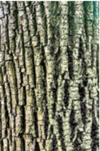 Diseño de ritidoma persistente, pardo grisácea, fisurada con surcos longitudinales rectos y profundos, presentándose en los domos grietas transversales poco profundas