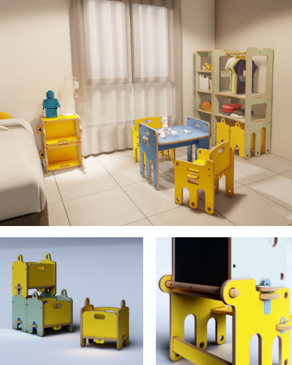 CONUCA, nacida en San Fernando en la provincia de Buenos Aires en 2022, con el claro objetivo de reivindicar y revalorizar los muebles de pino, con una perspectiva integral, social, comunitaria y formativa en las experiencias de trabajo dentro de la economía popular como impronta esencial. Crearon la línea Tiqui-Taca de mobiliario infantil, con enfoque cooperativo y evolutivo que, mediante un sistema de diseño y producción modular, se adapte al crecimiento de los niños y optimice los procesos de fabricación de la cooperativa, reduciendo costos, simplificando el armado y ampliando su aplicabilidad a distintos contextos (doméstico, educativos, comunitarios).
