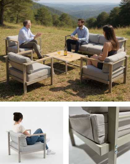 Ellos mostraron su nuevo set de muebles exterior, enfocados en el desarrollo de una línea de living exterior conformada por sillones de uno y dos cuerpos, acompañados de una mesa ratona como superficie de apoyo. La propuesta formal responde a las tendencias y demandas del mercado actual, priorizando una estética contemporánea, funcionalidad y competitividad en el segmento de mobiliario exterior.