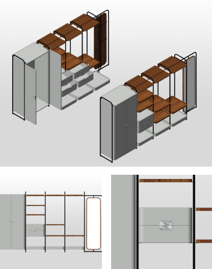 Con la búsqueda de la emoción a través del diseño como meta, y mediante su transformación para una mejor calidad de vida, desplegaron un novedoso Sistema modular de vestidores. Esta innovación busca trascender la función tradicional de guardado para convertirse en una alternativa de organización y exhibición flexible.