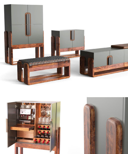 El concepto de esta colección de cuatro elementos parte de la premisa del disfrute, integrando diseño contemporáneo con raíces artesanales. La innovación se expresa en los detalles funcionales y en la combinación de materiales nobles (madera natural y cuero) con terminaciones modernas (chapa pintada y melamina de colores de tendencia 2025-2026).