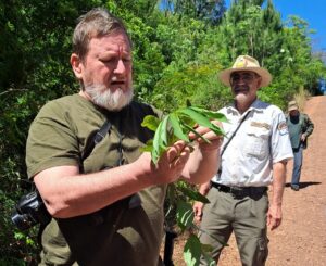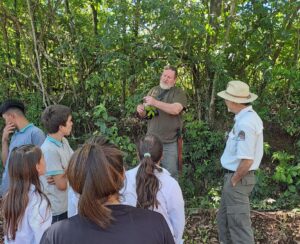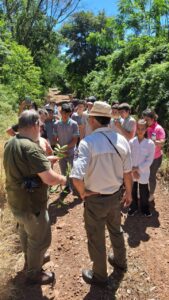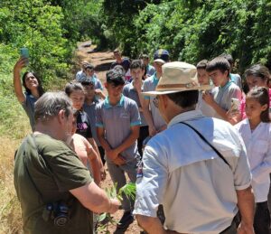 Durante el recorrido, los guardaparques guiaron observaciones sobre árboles, plantas y animales, destacando las características de las especies autóctonas y los factores que amenazan su supervivencia.