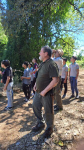 El grupo continuó luego unos 500 metros dentro del monte, donde se profundizó en el reconocimiento de la vegetación nativa, el tipo de suelo y las interacciones que conforman el ecosistema. Esta segunda instancia permitió a los estudiantes vivir una experiencia de observación directa, con explicaciones sobre el equilibrio natural y la importancia de su conservación.