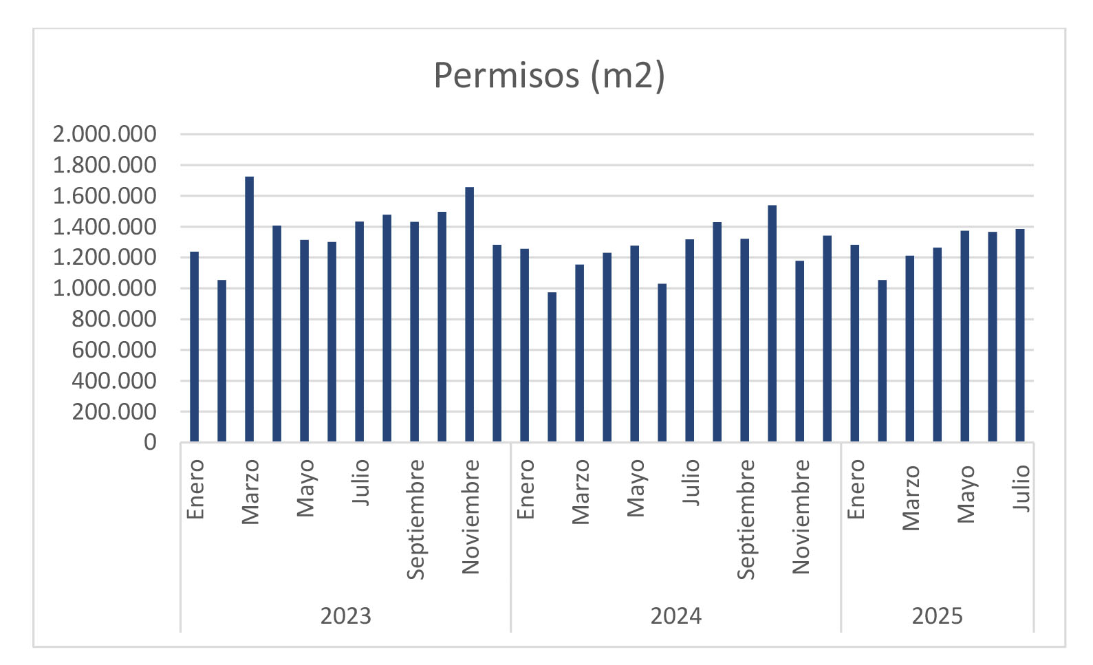 En tanto, los permisos de construcción en 247 municipios del país aumentaron 1,34% respecto a junio y 5,04% interanual, mostrando una tendencia de leve recuperación, aunque aún dentro de una “meseta baja” de actividad.