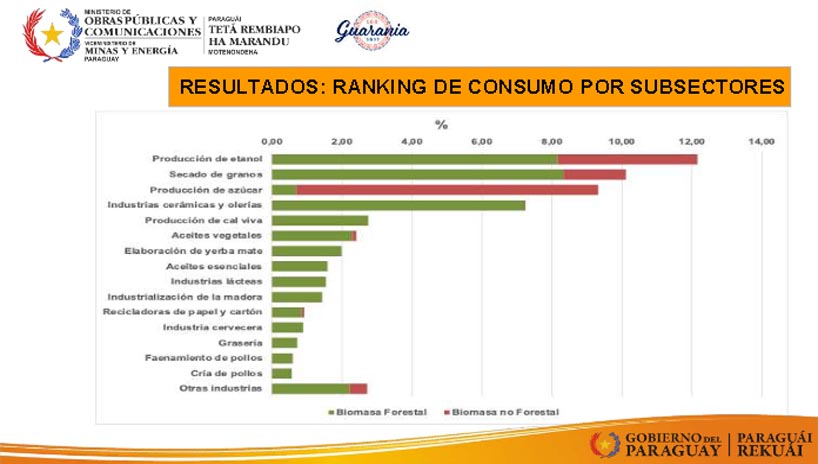 Entre los principales subsectores consumidores se destacan la producción de etanol, el secado de granos, la industria azucarera, las cerámicas y olerías, y la producción de cal viva, todos con un uso intensivo tanto de biomasa forestal como no forestal.