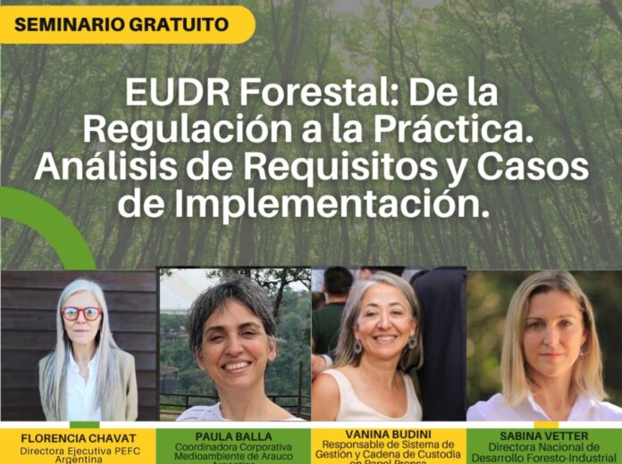 BUENOS AIRES (20/11/2026).- Este miércoles 26 de noviembre, de 11 a 12:30, con inscripción previa vía ZOOM y en vivo por Youtube, la Asociación Forestal Argentina organiza un seminario gratuito sobre los nuevos requisitos del Reglamento Europeo EUDR y cómo impactan en el sector forestal argentino.