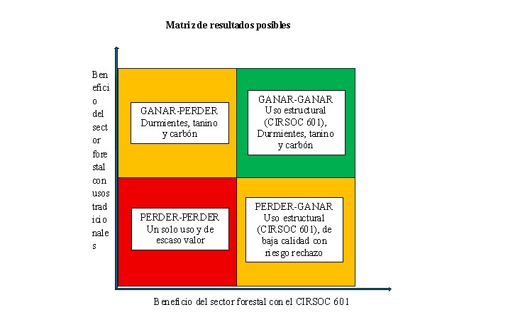 La incorporación del quebracho colorado a la construcción civil normada se puede realizar sin afectar ni solapar con los usos tradicionales e incluso puede ayudar a desarrollar un proceso de consolidación como un producto cuyo precio se define en el mercado internacional toda vez que se establezca un sistema de selección adecuado de la madera: