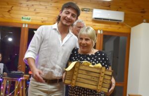 Lucila “Mami” Florentín Nowosad, una histórica empresaria misionera y destacada dirigente gremial, recibió el reconocimiento por su trayectoria de manos de su nieto, Santino Bonetti.