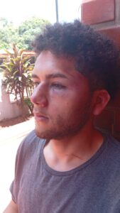 El joven denunció que fue golpeado con una tabla de madera en el rostro y el cráneo.
