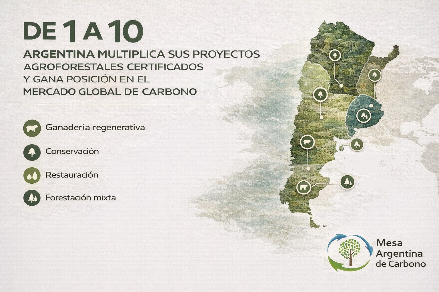 Buenos Aires, febrero de 2026. – Argentina dio un giro estratégico en el mercado global de carbono. Desde la creación de la Mesa Argentina de Carbono (MAC) en 2022, el país multiplicó por diez sus proyectos agropecuarios y forestales certificados, alcanzando hoy una cartera de diez iniciativas validadas bajo estándares internacionales y que abarcan más de 1 millón de hectáreas, casi 50 veces la superficie de la Ciudad de Buenos Aires.