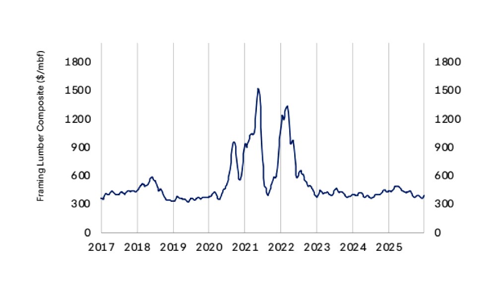 China, por su parte, continuó desacelerándose. Las importaciones de madera de coníferas cayeron 12% en los primeros once meses de 2025. La crisis inmobiliaria sigue siendo el principal factor detrás de la contracción de la demanda, afectando a desarrolladores y fabricantes de muebles.