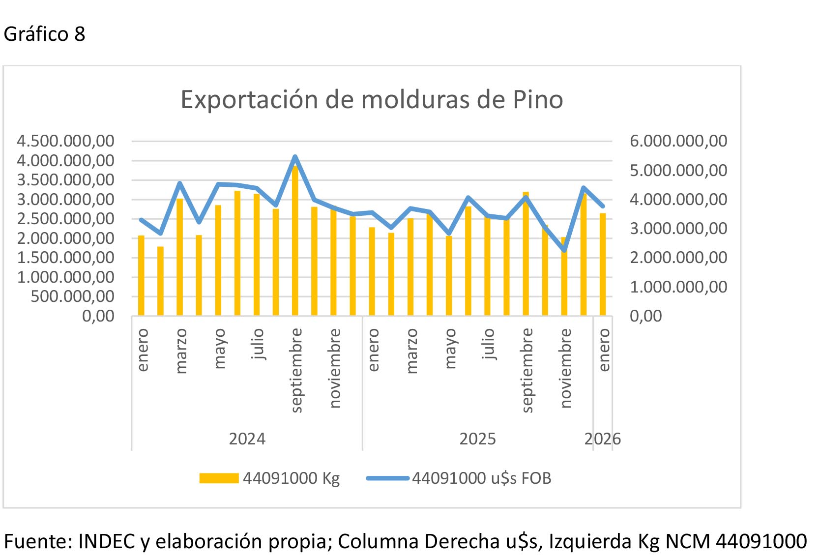 En contraste, las molduras —más dependientes del mercado estadounidense— registraron una caída interanual del 8%.