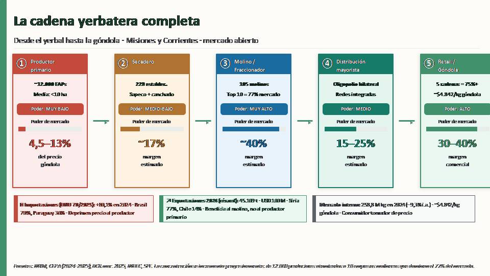 El resultado estructural es incontestable: el productor financió con su pérdida el margen industrial de quienes al mismo tiempo exportaban yerba elaborada a récord histórico.