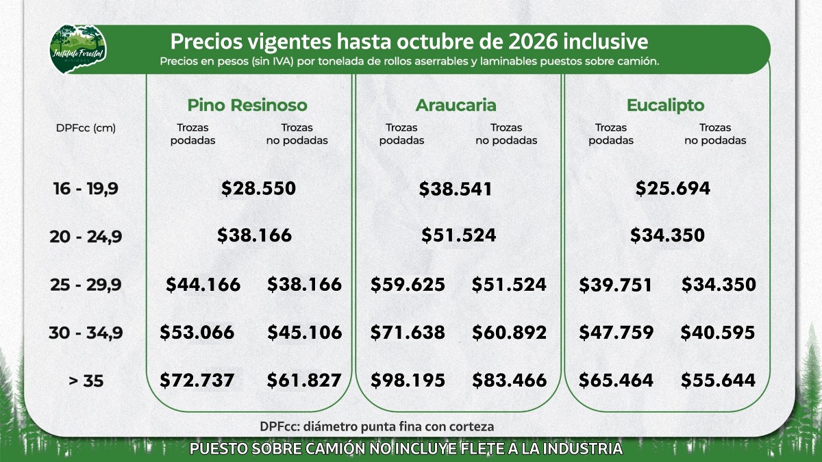 «Es el segundo semestre consecutivo que el Directorio resuelve por unanimidad mantener los valores de finales del año pasado, con la esperanza de que sirva como herramienta para enfrentar el tiempo de ajuste que se proyecta hacia el futuro próximo. La decisión de mantener los precios alcanza a todos los productos y subproductos forestales», informaron desde el organismo.
